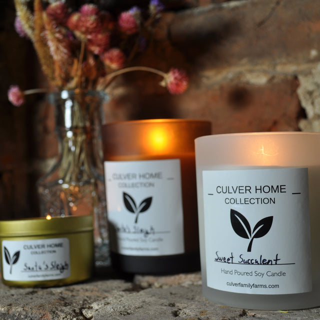 We focus on quality and craftsmanship through our Culver Home Collection. We make hand poured soy candles and knit hats here on the farm. We source kitchen, pantry, and bath essentials from other small businesses we trust and respect.